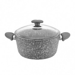 Тенджера с капак Papilla Nature stone NSC24, 24 см, 4 л, Мраморно покритие, Кован алуминий, Сива