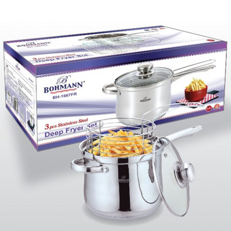 Тенджера с кошница за пържене Bohmann BH 1667FR, 3.4 л, 18 см, Индукция, Инокс