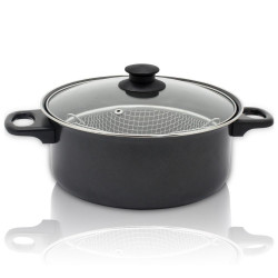 Тенджерa с кошница за пържене и капак ESPERANSA ES 1213 F, 1.8 л, 24 см, Черен