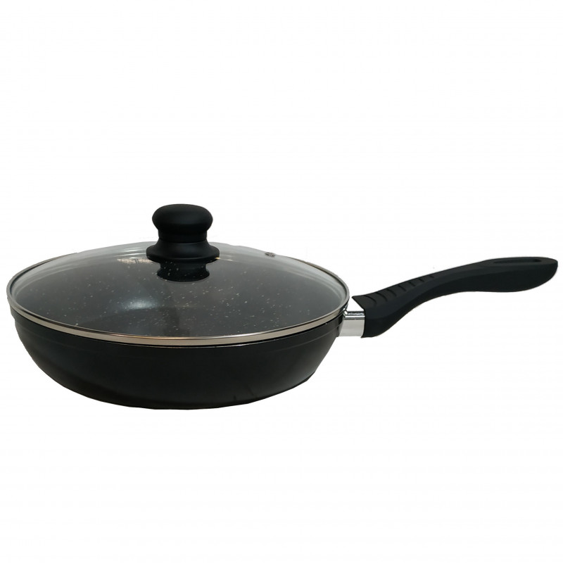 Тиган с капак Goldmann GM 1000-28NB, 28x6.8 см, Мраморно покритие, Индукция, Черен