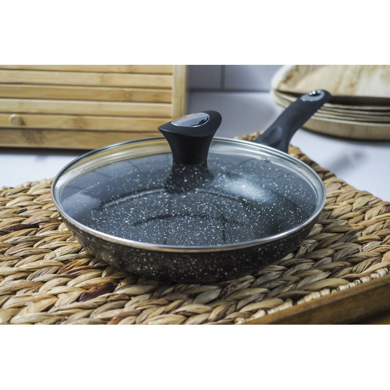 Тиган с капак Klausberg KB 7037, 20 см, Мраморно покритие, Мека дръжка, Индукция, Черен