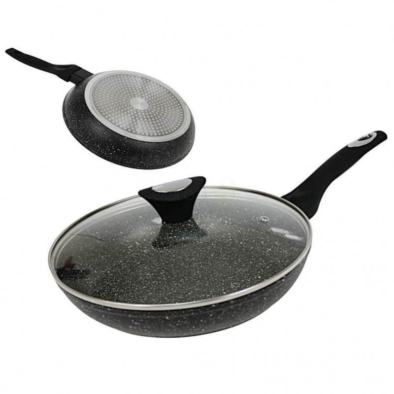 Тиган с капак Klausberg KB 7038, 22 см, Мраморно покритие, Мека дръжка, Индукция, Черен
