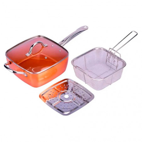 Тиган с кошница за пържене Silvano SCC-7527, 24 см, 5 л, 450C, Керамично покритие, Стъклен капак, Индукция, Меден