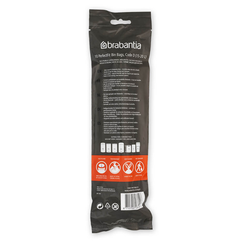 Торбички за кош Brabantia PerfectFit Sort&Go/Built-In 1005567, Размер D, 15-20 л, 10 броя, Бял