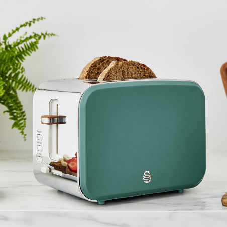 Тостер Swan ST14610GREN, 900 W, 2 филийки, 6 нива, Тавичка за трохи, Размразяване, Зелен