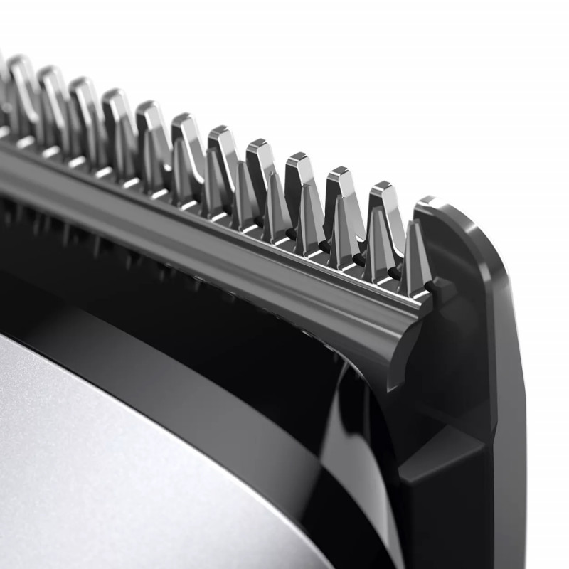 Бързо оформете лицето и косата си с деветте подсилени предпазители за подстригване. 2 гребена за набола брада за 1 мм и 2 мм подстригване, регулируем гребен за брада, 4 широки гребена за коса с 4 мм, 9 мм, 12 мм и 16 мм и 2 гребена за тяло за 3 мм и 5 мм подстригване.