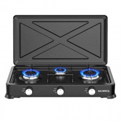 Троен газов котлон с капак KUMTEL HGCL-1030B, LPG битова газ, 60x33 см, Неплъзгащи се крачета, Черен