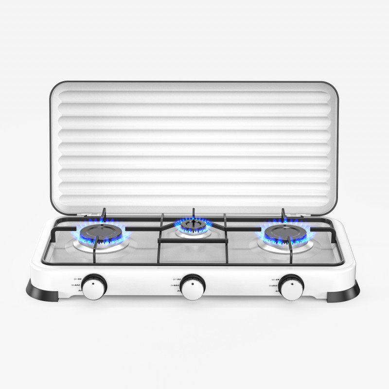 Троен газов котлон с капак Rosberg R51454D3, 2x2.2kWh 1x1kWh, 30 mbar, Въглеродна стомана, Бял
