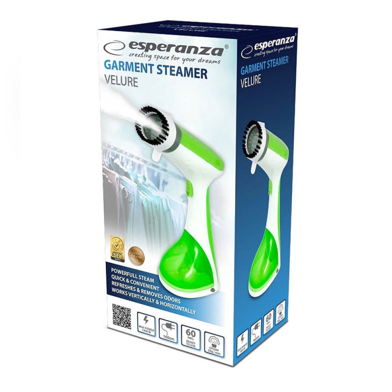Уредът за гладене с пара на Esperanza е изключително удобен и лесен за употреба. Идеален за гладене и освежаване на дрехи, завеси, тапицерии и одеяла. Може да го използвате както в хоризонтално, така и във вертикално положение, а времето, което ще му е необходимо преди да започнете да го използвате е само 30 секунди. Да, загрява едва за 30 секунди. Високото налягане на парата, което уредът генерира се справя без проблем и с най-упоритите гънки, без дори да е необходимо да разгъвате дъската за гладене. Уредът е подходящ за всички видове материи.