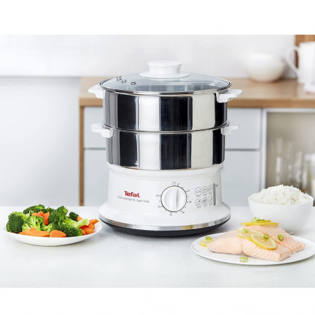 Уред за готвене на пара Tefal VC145130, 900 W, 2 нива, Таймер, Съвместим с миялни машини, Бял