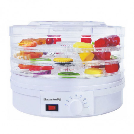 Уред за сушене на храна Hausberg HB-810AB, 250W, 3 плочи, 35-70 C, Меден мотор, Бял