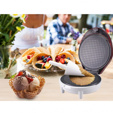 Уредът за вафлени фунийки за сладолед Beper P101CUD001 е перфектното решение, което ви позволява да създадете вкусни и красиви вафлени фунийки у дома. С мощност от 1000 W, този уред осигурява бързо загряване и ефективно приготвяне на фунийките.