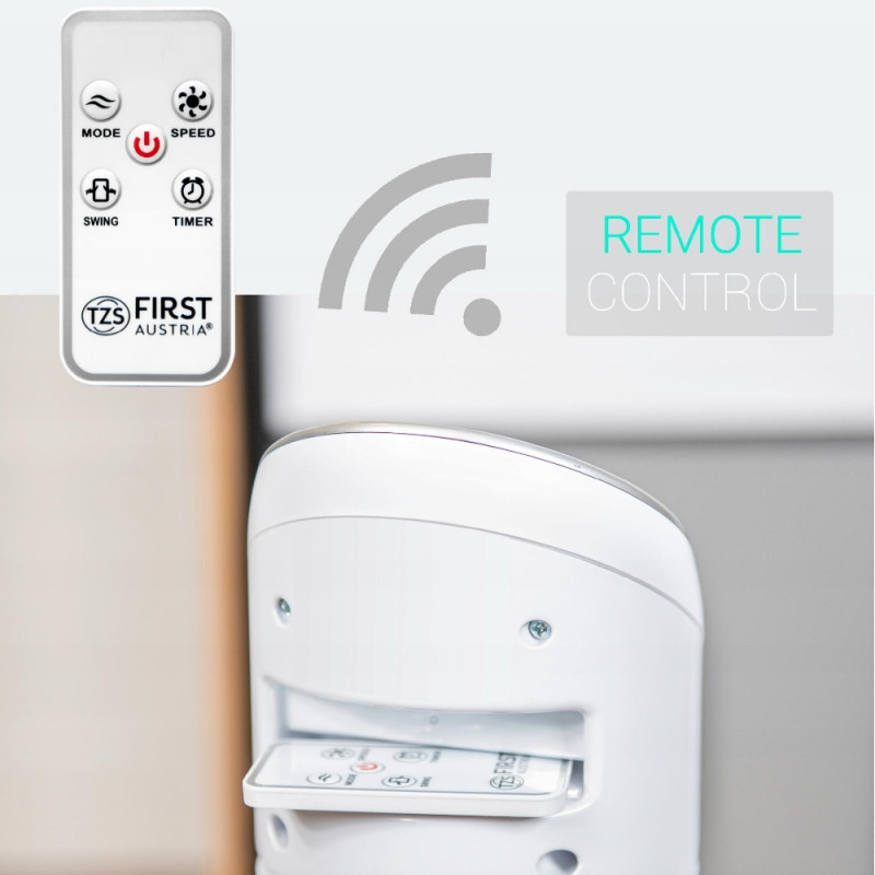 Вентилатор кула First Austria FA-5560-3, 60W, Таймер 12ч, Тих, Дистанционно, Тъч панел, Бял