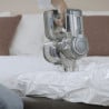 Изключително лека и тиха, тази прахосмукачка се трансформира лесно в ръчна – подходяща за почистване на рафтове, стъпала, тапицерия или дребни пространства. Специално проектираните четки и аксесоари я правят отличен избор за домове с домашни любимци. Четката Pet Brush улавя ефективно косми и алергени, като в същото време пречиства въздуха в помещението.