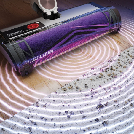 - Дълбоко почистване на килими и твърди подове: Ролката с четка QuadClean почиства в дълбочина всички видове подове без смяна. Уникалният дизайн включва повдигнат преден ръб за изтегляне на големи замърсявания, перки за килими за повдигане на забити замърсявания и косми, разбъркващи ребра за разхлабване на фини замърсявания и меки микрофибри за улавяне на фин прах