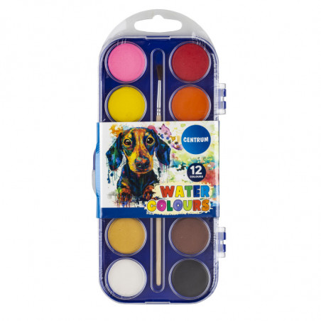 - Комплекта включва: 12 цвята сухи бои с диаметър на таблетката ф 20 мм и четка за рисуване