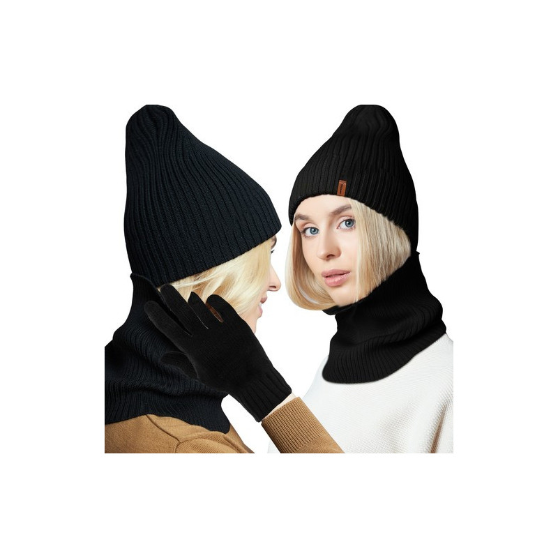 Зимен комплект, шапка, шал и ръкавици Trizand, 3 в 1, Универсални, Черен